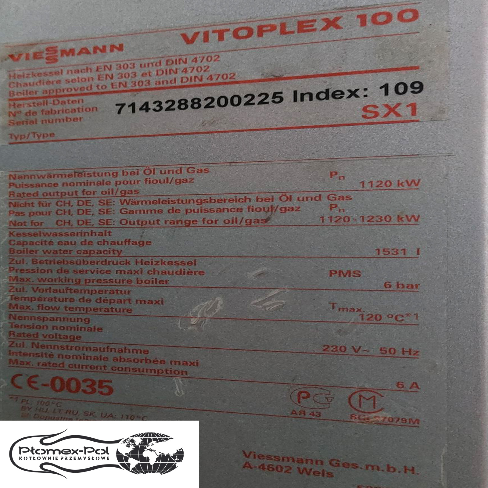 - Producent/Model: Viessmann Vitoplex 100