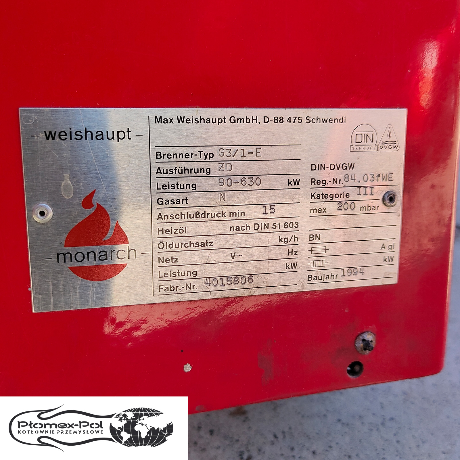 Palnik Weishaupt G3/1-E ZD (90-630kW) Gazowy Używany