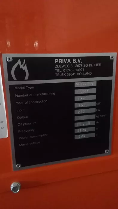 Zainstalowany fabrycznie nowy palnik na olej opałowy. Palnik nadmuchowy o mocy 233 kW zainstalowany został przez producenta na ścianie frontowej pieca nadmuchowego.