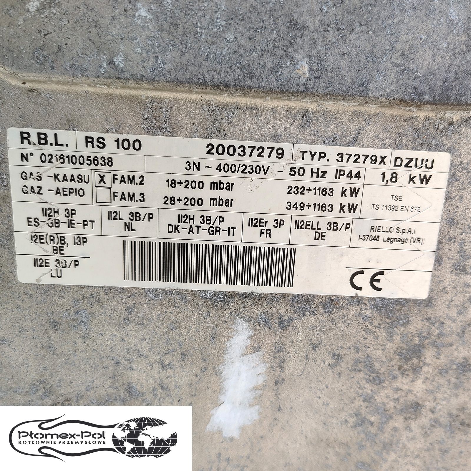 Używany Palnik Gazowy Riello RL 130 – 1214 kW | Sprawny